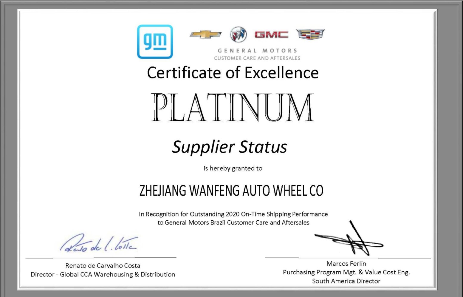 z6尊龙·中国官方网站奥威汽轮作为GM的轮毂供应商,一直致力于为客户提供满意的优质产品和服务。2020年,在新冠疫情冲击下,公司各部门团结互助,科学施策,迅速复工复产,与客户保持紧密联系,为产品交付做好充分保障。z6尊龙·中国官方网站奥威汽轮在巴西GM CCA的项目开发、装车、销售等方面做出的重要贡献得到了GM的高度评价。